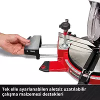 Einhell TE-MS 18/210 Li akülü gönye testere, özel olarak geliştirilmiş ahşap ve parke gibi malzemeleri zahmetsizce kesebilen yüksek kaliteli bir testere bıçağına sahiptir. Pratik mil kilidi sayesinde testere bıçağı kolayca değiştirilebilir. Yavaş başlatma fonksiyonu, ilk çalışmada motoru ve aküyü korur. Sabitleme aparatı, cihazı yerine sabitler. Derinlik durdurucu sayesinde oluklu malzemeler de hızlı ve hassas bir şekilde kesilebilir.