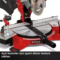 Einhell TE-MS 18/210 Li - Solo Akülü Gönye Kesme, karışık kabloları, takılma tehlikelerini, geri sarma sıkıntısını ve kısıtlı çalışma aralığını geçmişte bırakır. Power X-Change ailesinin bir üyesi olan bu çapraz kesim ve gönye testere, atölye, garaj ve hobi odasında kullanım için çok yönlü bir alettir. Şarj edilebilir akü, sistem serisindeki diğer tüm cihazlarda da kullanılabilir. Hızla ayarlanabilen ayarlar ahşap, panel, her türlü plastik veya parke döşeme gibi malzemeler üzerinde neredeyse zahmetsizce çalışmayı mümkün kılar. Örneğin döner tabla, açılı kesimler için tam bir açı ayarlama özelliğine sahiptir. Testere kafası, tam gönye kesimleri için sola doğru eğilebilir. X-Tend iş parçası destekleri, ayarların tek elle ve herhangi bir alete ihtiyaç duyulmadan yapılmasını sağlar. Tekrarlı kesimler için entegre bir limit durdurucu vardır. Yüksek kaliteli karbür uçlu hassas testere bıçağı, akülü testereler için özel olarak geliştirilmiştir. Kesme çizgisi lazeri ve LED aydınlatma, çalışmanın hızlı ama güvenli bir şekilde yapılmasını sağlar. İş parçasını güvenli bir şekilde sabitlemek için entegre bir kelepçe vardır. Talaş torbası veya talaş emme sistemi (emici bağlantısı Ø 36 mm) çalışma alanının temiz ve düzenli tutulmasına yardımcı olur ve havada toz birikmesini önler. Kompakt ve düşük ağırlıklı tasarımı ve taşıma sapı taşımayı kolaylaştırır. Bu ürün akü veya şarj cihazı olmadan gelir. Bunlar ayrı olarak temin edilebilir.