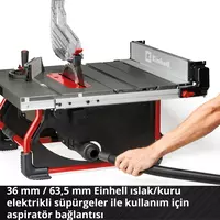 Düzgün çalışan kayar şaryo, daha büyük iş parçalarını bile hassas bir şekilde kesmeyi mümkün kılar. aksesuarlar için braketler taşımayı kolaylaştırır. 2.000 Watt gücü ve karbür uçlu Ø 254 mm bıçağı ile ahşapla çalışırken güvenebileceğiniz bir masa testeresidir. İster kontrplak ve panelleri düzeltin ister kirişleri ve kalasları uzunlamasına kesin: Masa testeresi, 85 mm kesme yüksekliği ve 45° eğilebilir ve yüksekliği ayarlanabilir bıçağı sayesinde her işin üstesinden gelir. İnce ayarlı, yüksekliği ayarlanabilir tabla eklentisine sahip alüminyum döküm çalışma masası, dengeli ve düz bir destek sağlar. Sağ tarafta iki montaj seçeneği bulunan yırtma çiti her iki tarafa da monte edilebilir ve bir döner düğme aracılığıyla hassas bir şekilde ayarlanabilir. Kılavuz çiti, bir masa uzantısı olarak işlev görmesini sağlayan katlanabilir bir sisteme sahiptir, ancak çok dar kesimler için testere bıçağının hemen yanına da takılabilir. Sağlam alüminyum açı durdurucu, 15° kılavuz ızgaraya sahiptir. Açı durdurucu, kayar tablaya monte edilebilir ve iş parçasını hassas bir açıyla itmek için kullanılabilir. İki parçalı bıçak koruması, kesme alanının optimum şekilde görülebilmesi ve çalışma sırasında güvenlik avantajları sunar. Çalışma alanının temiz tutulması gerekiyorsa, emiş adaptörü aracılığıyla emiş sağlamak için herhangi bir Einhell ıslak ve kuru elektrikli süpürge bağlanabilir. Testere, hem motoru hem de sigortaları korumak için yumuşak bir başlatma fonksiyonuna sahiptir. Lastikli ayaklara sahip sağlam çelik çerçeve yapısı, masa testeresinin düşük titreşimle güvenli bir şekilde konumlandırılmasını sağlarken, birden fazla taşıma kolu, kablo sarıcı ve tüm ekipman ve aksesuarlar için braketler taşımayı kolaylaştırır.